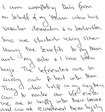 | I can rely on this service because they encourage me to live as independently as possible | ||