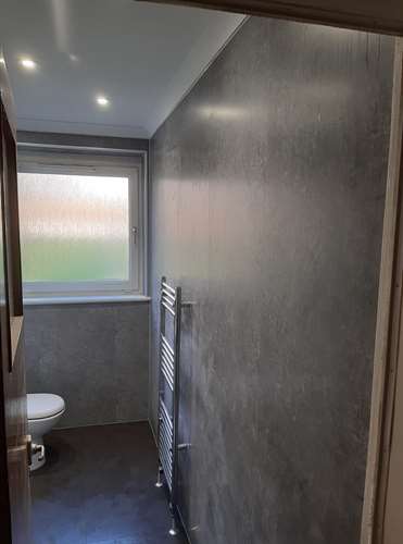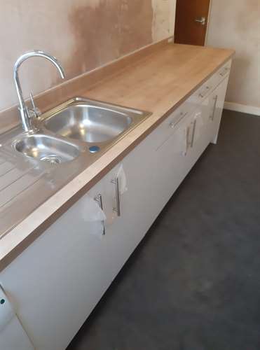 Kitchen remodel which included the removal of existing kitchen wall and installing a metal beam and the fitting of the kitchen,plastering,plumbing electrics,joinery and painting where required.The installation of hob,oven and white goods e.g.washing machine fridge freezer.