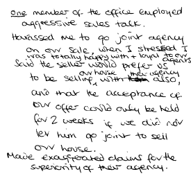| SELLERS Did the firm clearly explain their fees, expenses & business terms and confirm this in writing (including email) before marketing your property? | ||