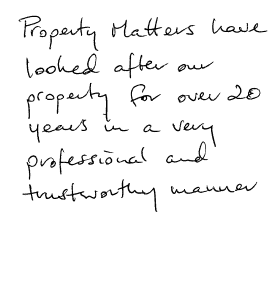 "I have been dealing with Property Matters relatively not that long, just under a year. I bought the property and have been renting it out through them. Overall I am happy with the agency and intend to continue using their services."