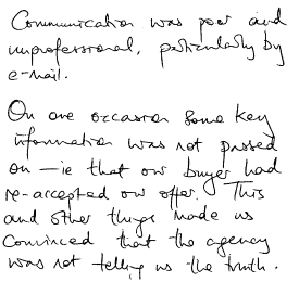 | SELLERS Did the firm clearly explain their fees, expenses & business terms and confirm this in writing (including email) before marketing your property? | ||
