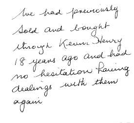 "We had previously sold and bought through Kevin Henry 18 years ago and had no hesitation having dealings with them again."