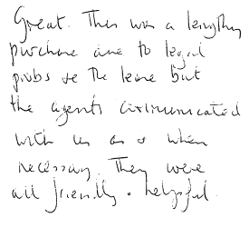 " Great. This was a lengthy purchase are to legal probs re the leone but the agents communicated with us as & when necessary. They were all friendly & helpful."   more