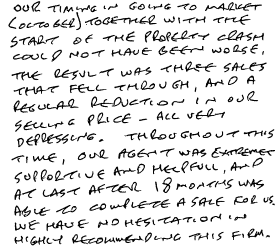 | SELLERS Did the firm clearly explain their fees, expenses & business terms and confirm this in writing (including email) before marketing your property? | ||