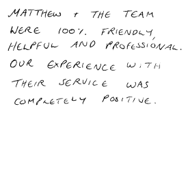 "Matthew & the team were 100% friendly, helpful and professional. Our experience with their service was completely positive."