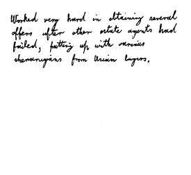 "Worked very hard in obtaining several offers after other estate agents had failed, putting up with various shenanigans from Asian buyersWorked very hard in obtaining several offers after other estate agents had failed, putting up with various shenanigans from Asian buyers."