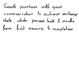"Smooth purchase with good communication to achieve exchange date, whole process took three months from first viewing to completion."