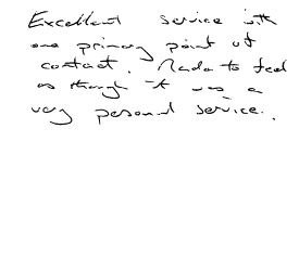 "Excellent service with our primary point of contact. Made to feel as though it was a very personal service."
