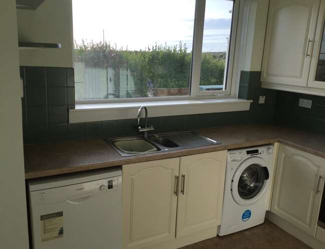 Kitchen before removal all units were removed and tiles striped off old floor was lifted all facing...