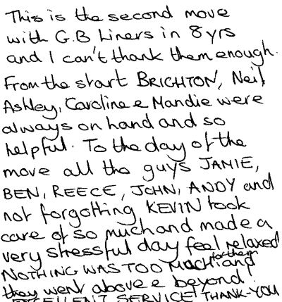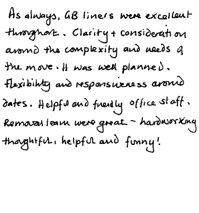 With over 90 years of experience of moving homes locally, nationally and internationally, GB Liners is the safe choice. We recognise this is a people business and the quality of the people makes the difference. So we only have full-time, highly trained staff who are given the best facilities, equipment and materials to do the job. We set out to provide excellent value for money and a trouble free move which almost becomes enjoyable rather than something to be looked forward to with apprehension. Give us a call on 01273 391777. |