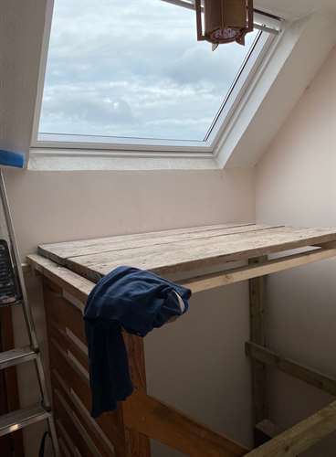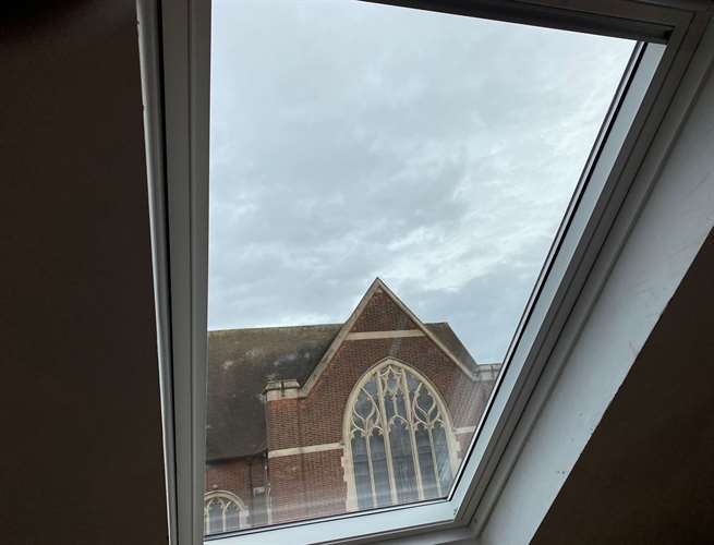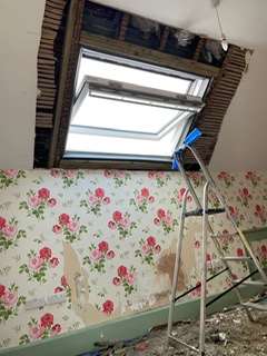 Complete replacement of existing broken pivot window with a Velux product. Included flashing kit, integrated blind & making good.